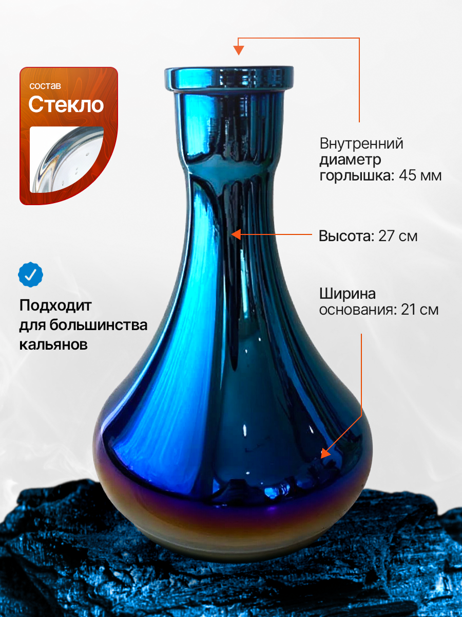 Колба для кальяна - это стеклянная чаша, которая является неотъемлемой частью системы курения. Она предназначена для охлаждения и очищения дыма от смол и обеспечивает полноценное и качественное парение. В нее заливается жидкость, которая служит для выполнения трех основных задач: остудить дым, увлажнить, очистить.