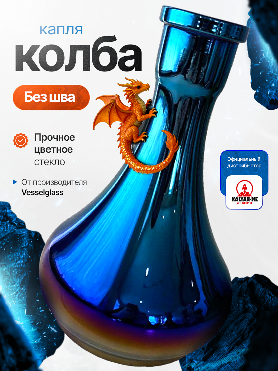 Колба для кальяна капля РАДУГА СИНЯЯ от производителя VesselGlass. Классическая, подходит для кальянов стандартного размера. Крепится через уплотнитель. Колбы VG выполнены из высококачественного стекла, прозрачные , без разводов и пузырей в отличие от дешевых аналагов. Все колбы в нашем магазине без шва!